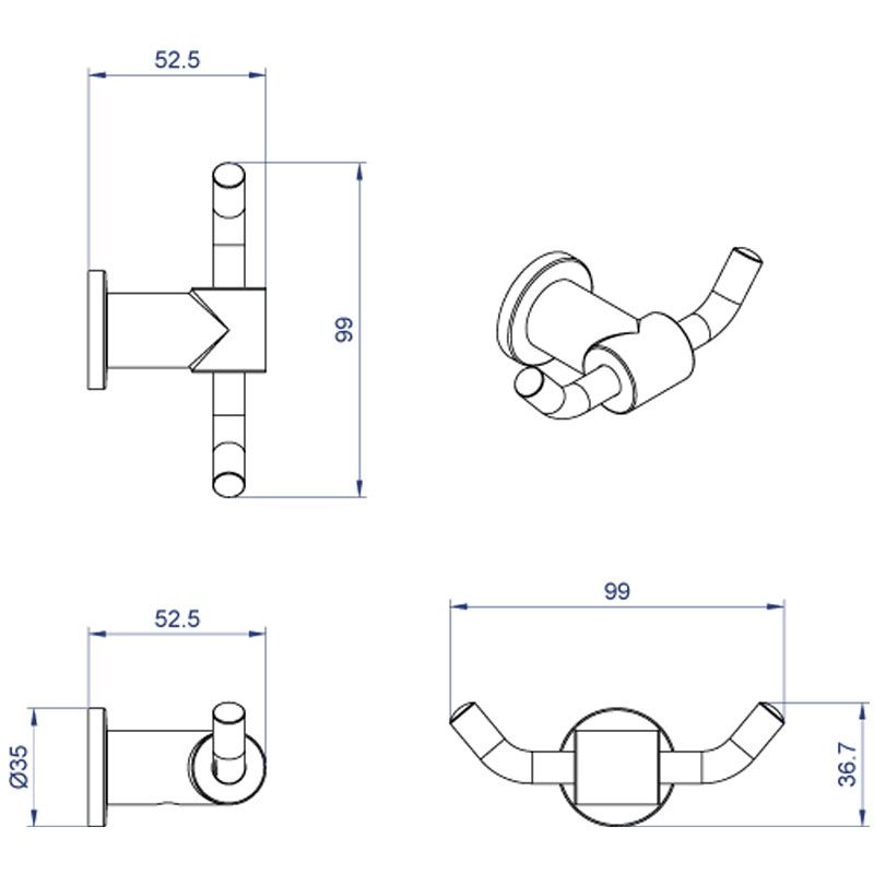 Крючок двойной AZARIO FORNY, хром (AZ-88305)