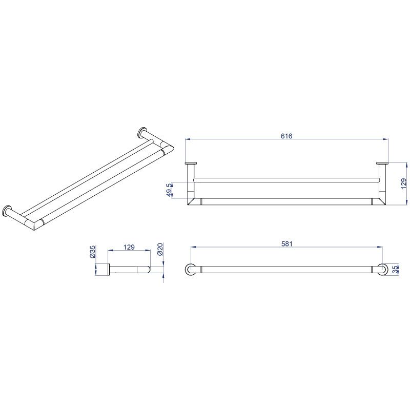 —Полотенцедержатель AZARIO FORNY трубчатый двойной 60 см, хром (AZ-88302)