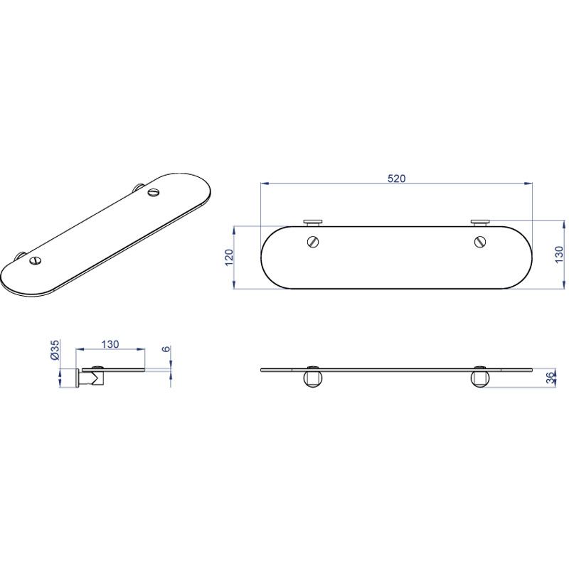 —Полка AZARIO FORNY стеклянная 52 см, хром (AZ-88303)