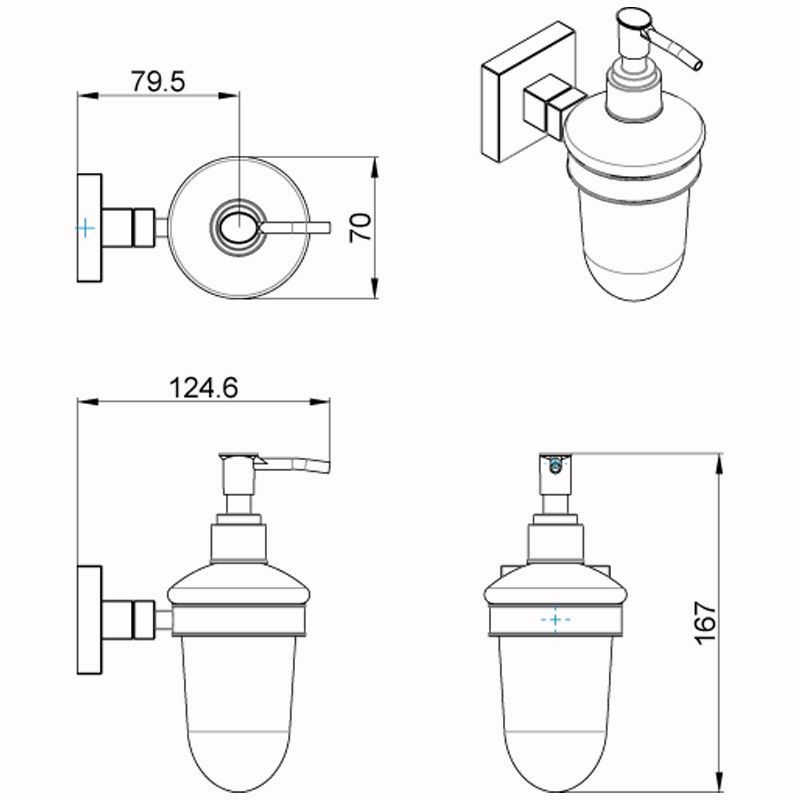 —Дозатор жидкого мыла AZARIO RINA 200 мл. подвесной, стеклянный, хром (AZ-87012)