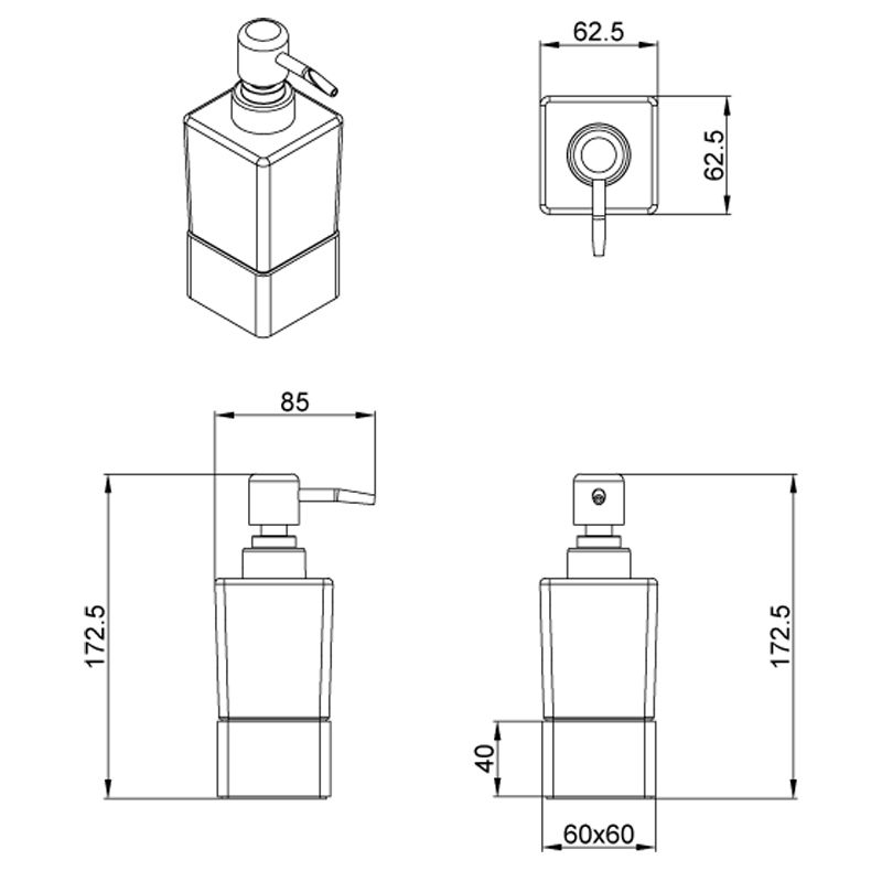 —Дозатор жидкого мыла AZARIO RINA 200 мл. стеклянный настольный, хром (AZ-130C)