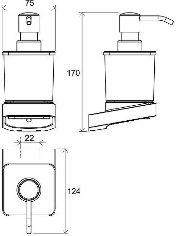 Крепление на дюбелях и крепежной металлической зажимной пластине. Держатель снабжен с внутренней стороны пластиковым кольцом для мягкой посадки стеклянного дозатора.