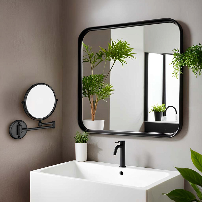—Косметическое зеркало Azario ALTRE Ø150 мм, подвесное, черный матовый (AZ-211В-6)