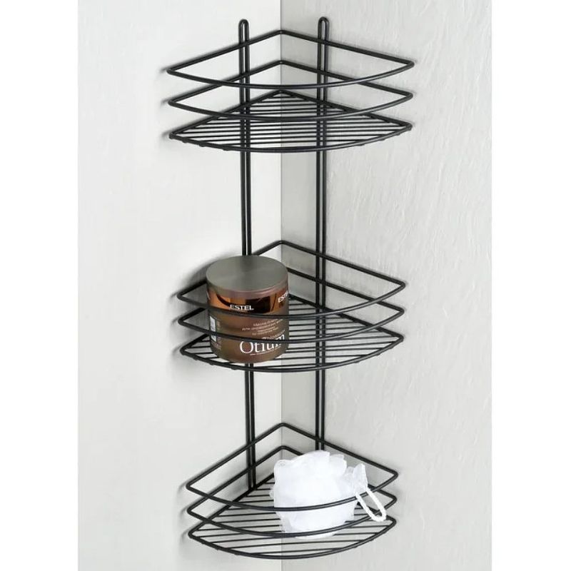 Угловая трехэтажная полка-корзина Fixsen FX-710B-3 с черным порошковым покрытием Муар.