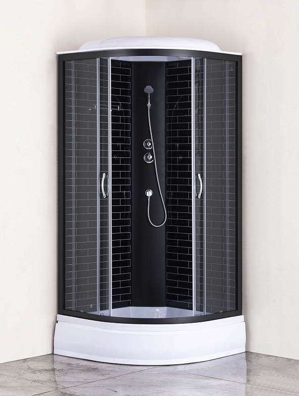 —Душевая кабина Loranto 90х90х215 поддон 25 см, черный кирпичный узор, серое стекло 4мм, профиль черный (CS-6690-25GB 90)