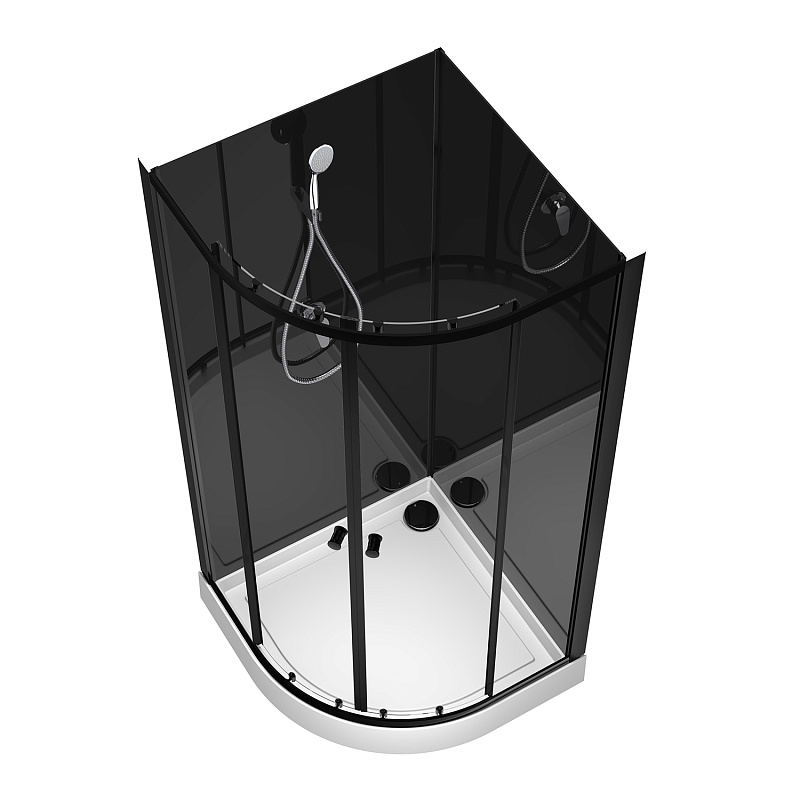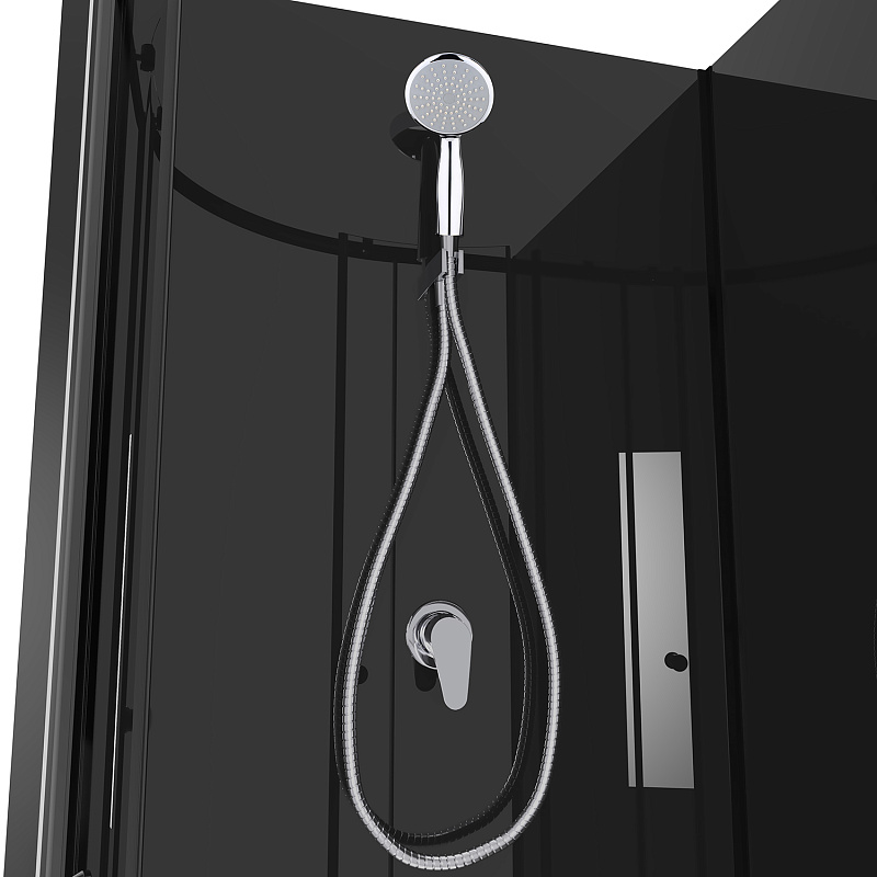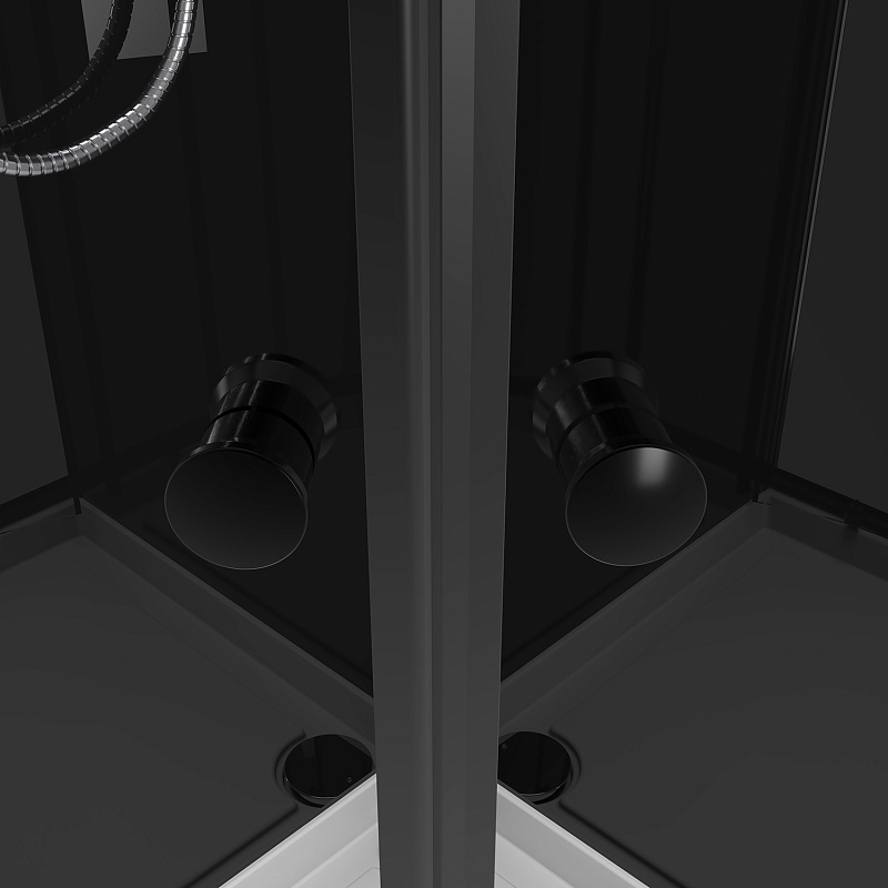 S-21800BP Душевая кабина 90x90x(190+15)см c низким поддоном 15см, прозрачное закаленное стекло 5 мм, задние стеклянные стенки ЧЕРНЫЕ, профиль черный-мат., хромированный ручной душ + шланг для душа +  держатель (3 места)