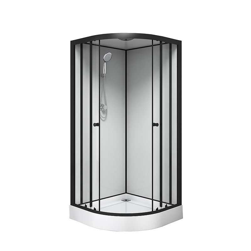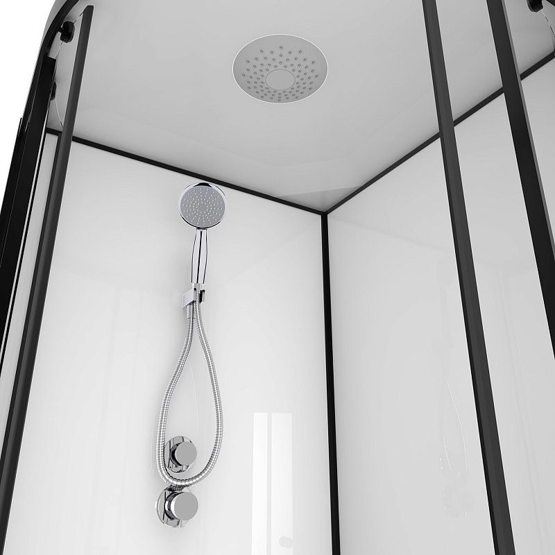 CS-22109 Душевая кабина 90x90x(190+15)см с низким поддоном 15см, прозрачное закаленное стекло 5 мм, задние стеклянные стенки БЕЛЫЕ, профиль черный-мат., верхний душ, хромированный ручной душ + шланг для душа + хромированный держатель (3 места)