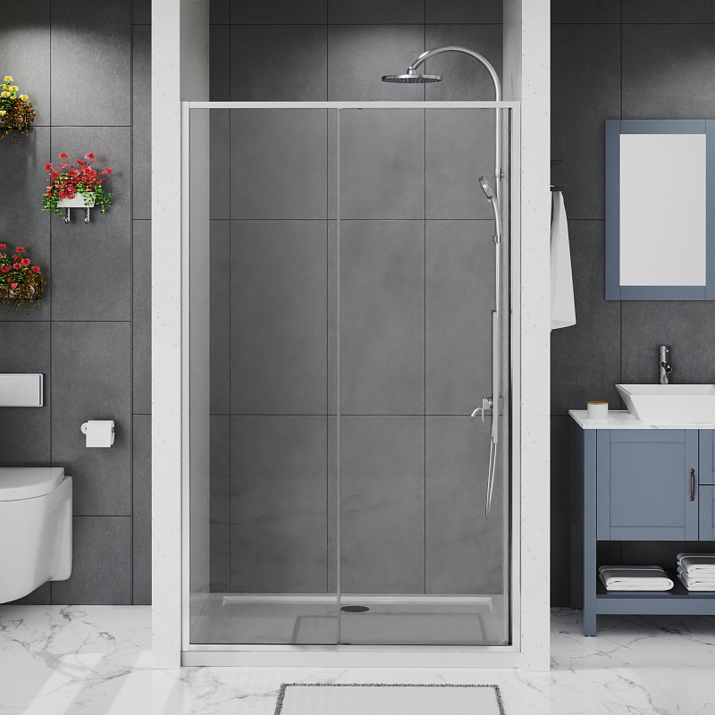 Душевая дверь Azario Шанхай 1200х1950 раздвижная, прозрачное стекло 6 мм, профиль хром (AZ-Y43-120-CH-CL)