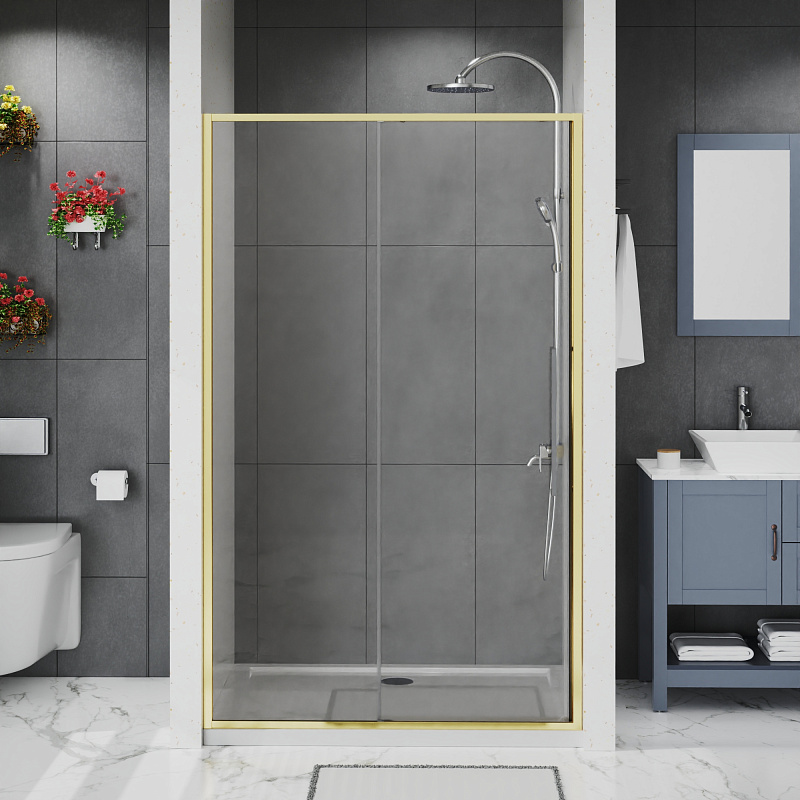 Душевая дверь Azario Шанхай 1000х1950 раздвижная, прозрачное стекло 6 мм, профиль брашированное золото (AZ-Y43-100-BGL-CL)