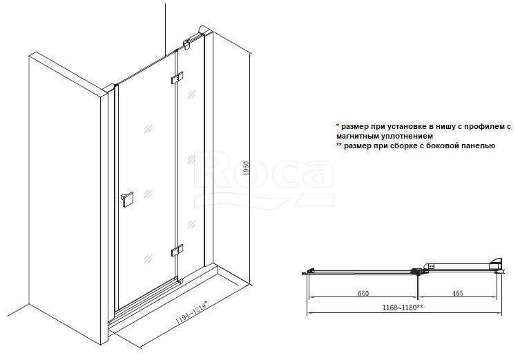 Прозрачное закаленное стекло толщиной 8 мм с гидрофобным покрытием MaxiClean. Хромированные алюминиевые профили, хромированные латунные петли и ручки. Возможен монтаж без душевого поддона.