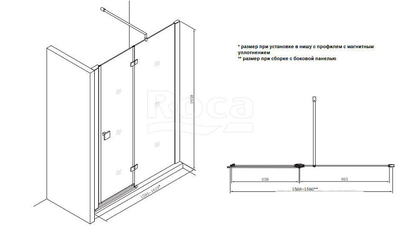 —Душевая дверь Roca METROPOLIS распашная 160х195, толщина полотна 8мм универсальная, цвет профиля хром