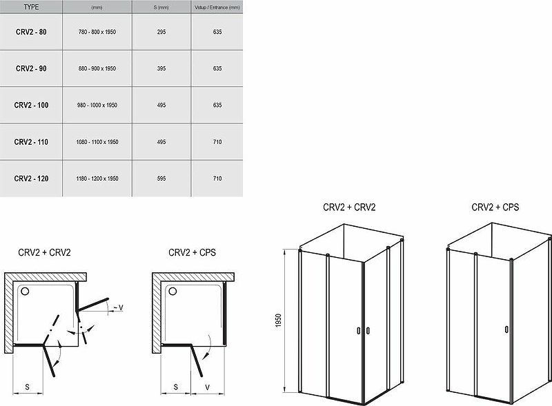 Душевая дверь Ravak Chrome CRV2-120 1QVG0C00Z1. Для комплектации душевого уголка необходимо купить 1 изделие CRV2 и неподвижную стенку CPS!