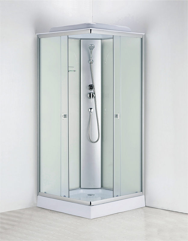 —Душевая кабина Loranto 980х980х2150 белое заднее стекло, поддон 14 см, матовое стекло 4 мм, профиль хром матовый (CS-992EATM/W-100)