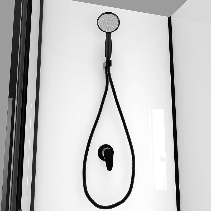 CS-21800 Душевая кабина 90x90x(190+15)см с низким поддоном 15см, прозрачное закаленное стекло 5 мм, задние стеклянные стенки БЕЛЫЕ, профиль черный-мат., черный ручной душ + черный шланг для душа + черный держатель (3места)
