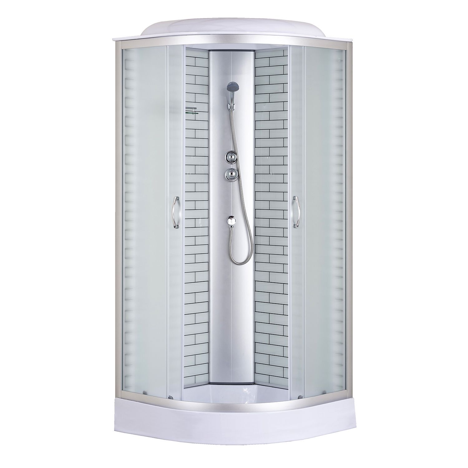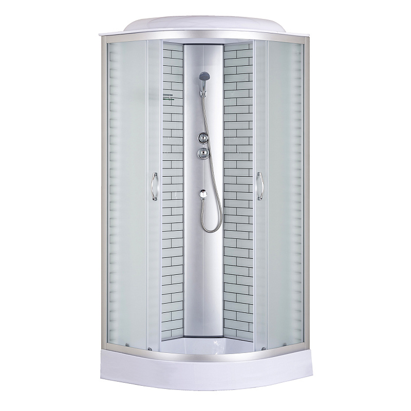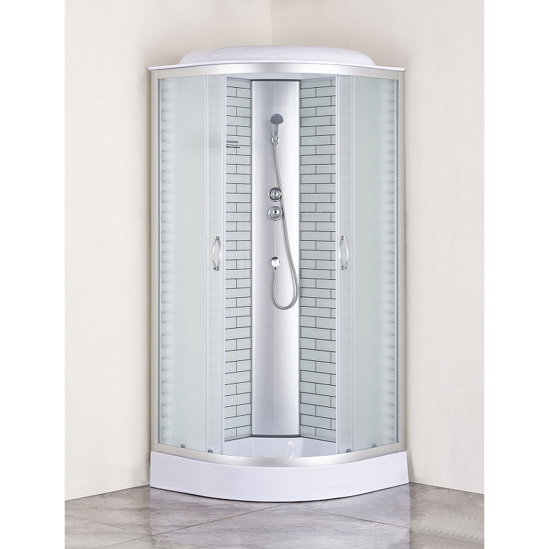 —Душевая кабина Loranto 90х90х215 поддон 13см, белый кирпичный узор, матовое стекло 4мм, профиль хром (CS669013FW90)
