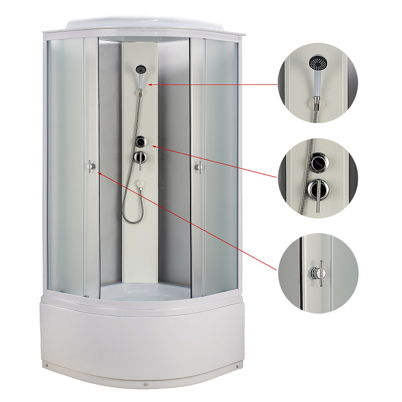 —Душевая кабина Loranto 90x90x215 поддон 40 см, 4 мм матовое стекло, профиль и задняя стенка белого цвета (CS-986ТМ/W)