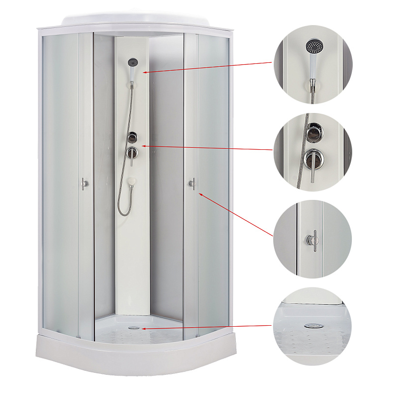 —Душевая кабина Loranto 90x90x215 поддон 13 см, 4 мм матовое стекло, профиль и задняя стенка белого цвета (CS-981ТМ/W)