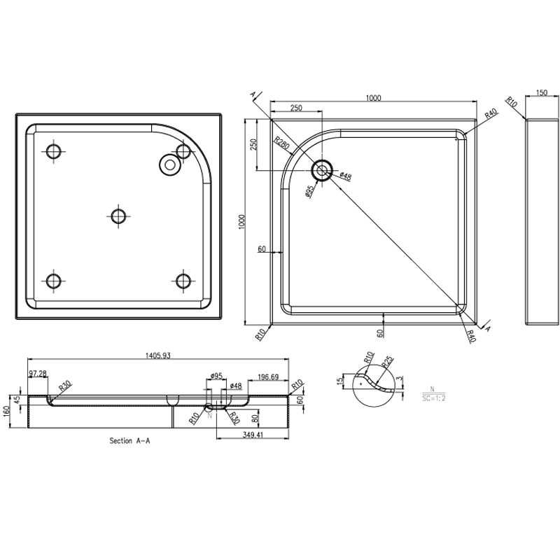 Душевой поддон Azario 1000х1000х150 R/L, для GREENWOOD 1000, NAG 1221 1000