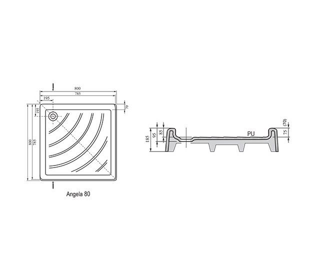 —Душевой поддон Ravak ANGELA-80 PU белый