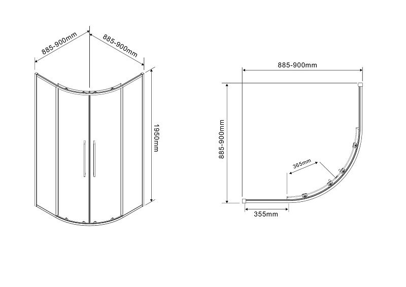 Радиусный Душевой Уголок 1/4 круга ВХОД С УГЛА, с