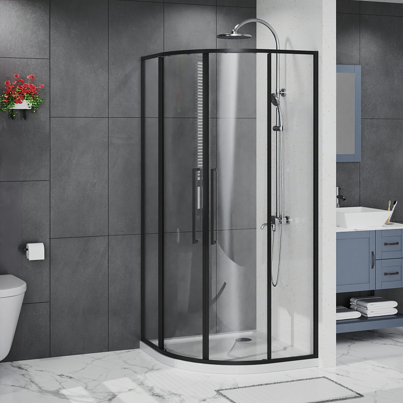 —Душевое ограждение Azario SHANGHAI 1000х1000х1950 четверть круга, прозрачное стекло 6 мм, профиль черный матовый (AZ-S43-100-MB-CL)