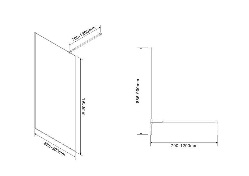 —Душевая перегородка Azario Валк-ин 900х1950 прозрачное стекло 8 мм, профиль черный матовый (AZ-251-90-MB-CL)