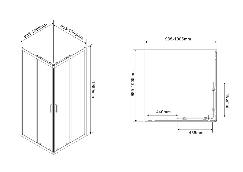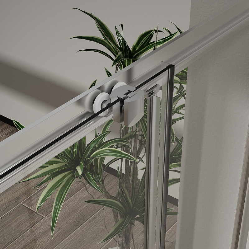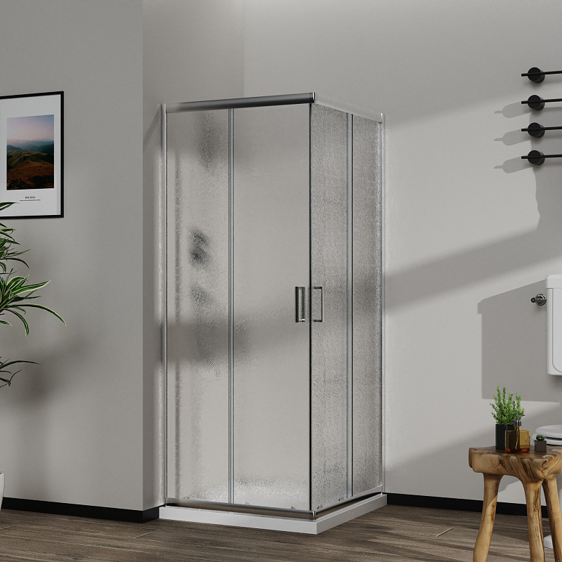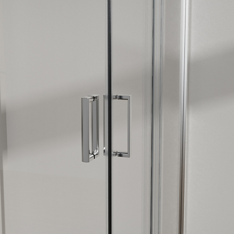 Квадратный и прямоугольный душевой уголок, с двумя раздвижными дверьми, на двойных бесшумных роликах с нержавеющими подшипниками.