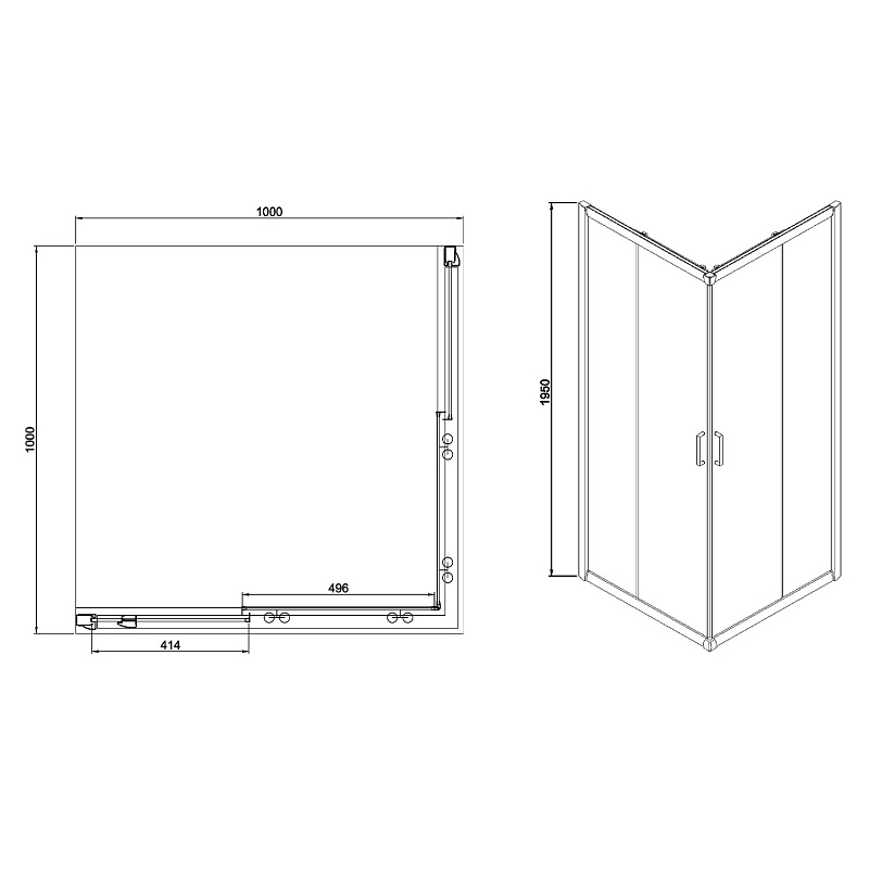 —Душевое ограждение Azario GREENWOOD 1000х1000х1950, БЕЗ ПОДДОНА, прозрачное стекло 6 мм, цвет профиля серебро (AZ-NNE1142 1000)