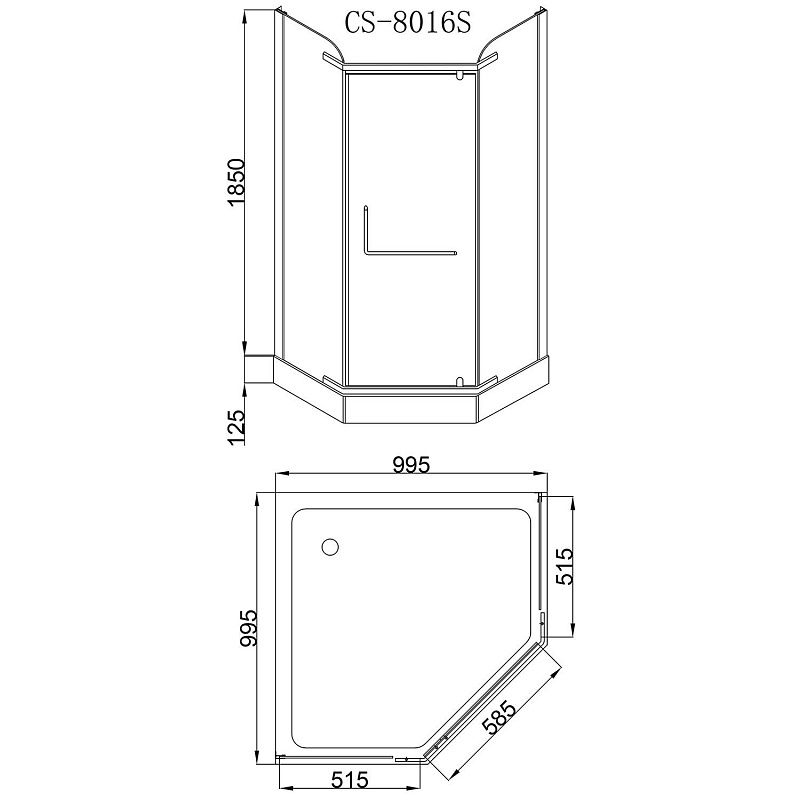 —Душевое ограждение Loranto 100х100х200, с низким поддоном 13 см. 8 mm прозрачное закаленное стекло, металлический сифон (CS-816S B)