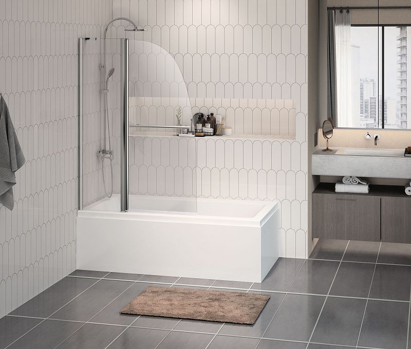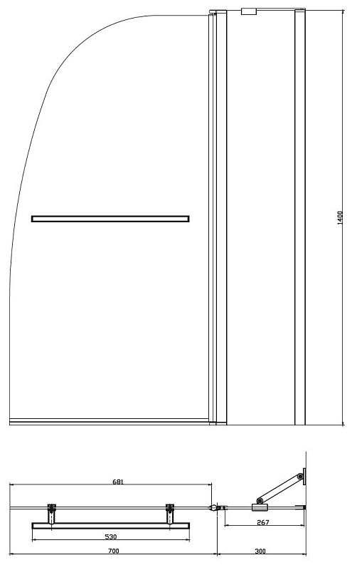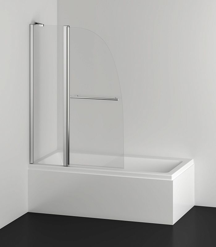 Шторка для ванны, частично складная, с поручнем.