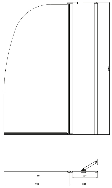Шторка для ванны Azario BOSTON 100*140 хром, прозрачное стекло 6 мм (AZ-142)
