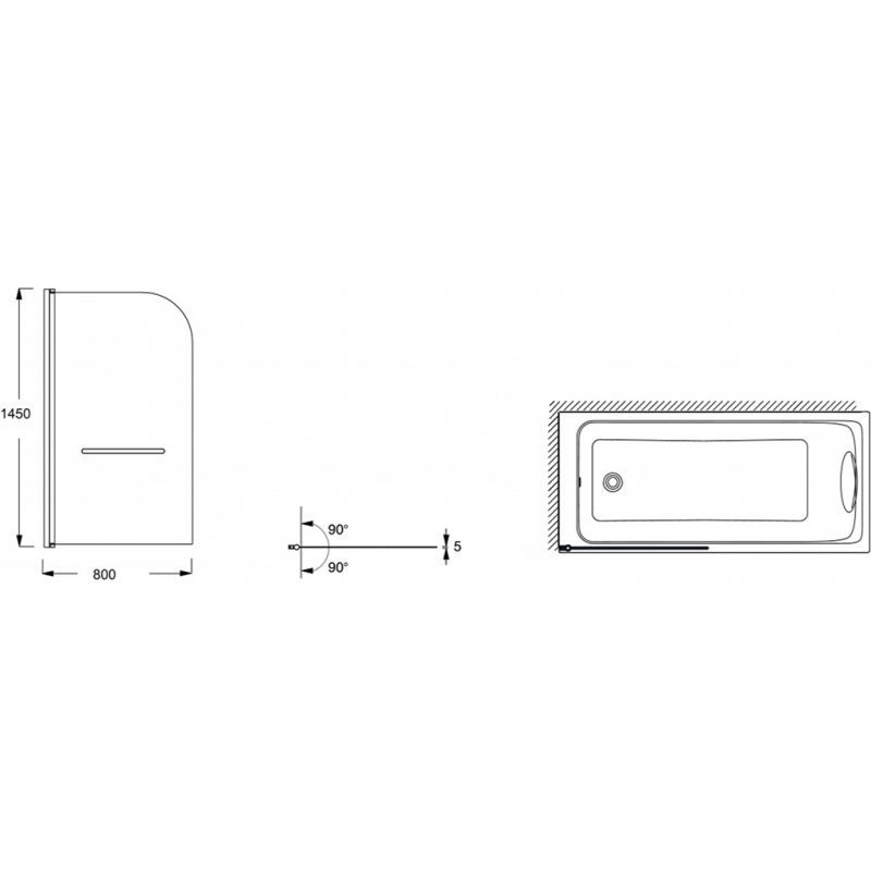 Шторка для ванны распашная Jacob Delafon Odeon Up 80х145 цвет профиля черный (E4932-BL)