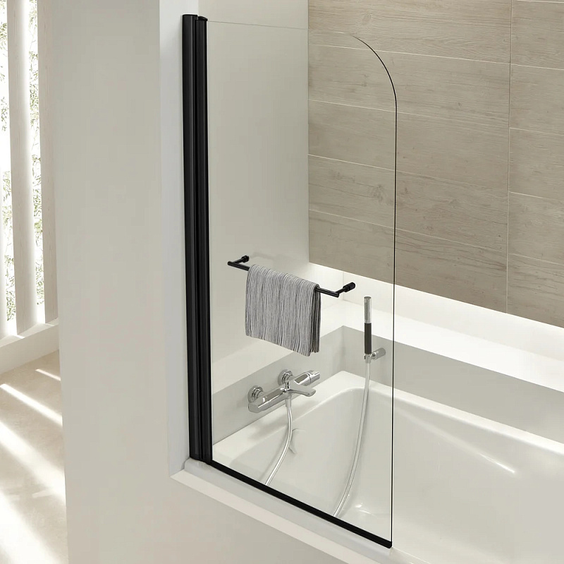 Шторка на ванну Jacob Delafon Odeon Up 80x145 с полотенцедержателем, стекло прозрачное, профиль Черный  (E4932-BL)