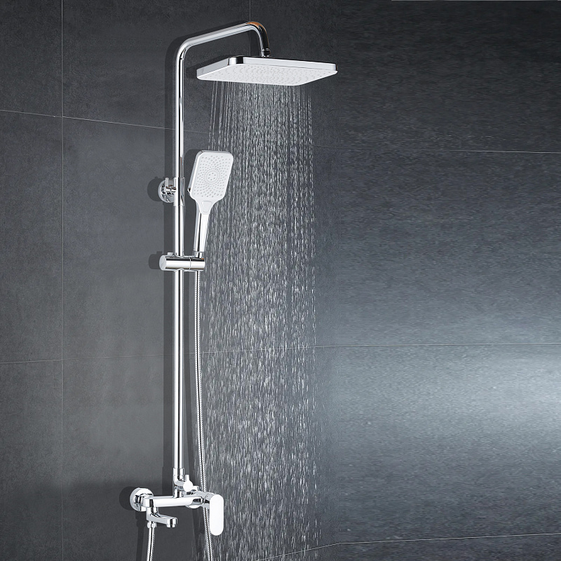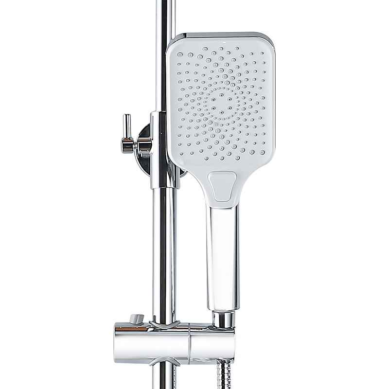 2) Верхний душ  прямоугольный 19*30 см., материал ABS -пластик.                           3) Прямоугольная лейка 3 режима, материал ABS -пластик.                                      4) Латунный смеситель
