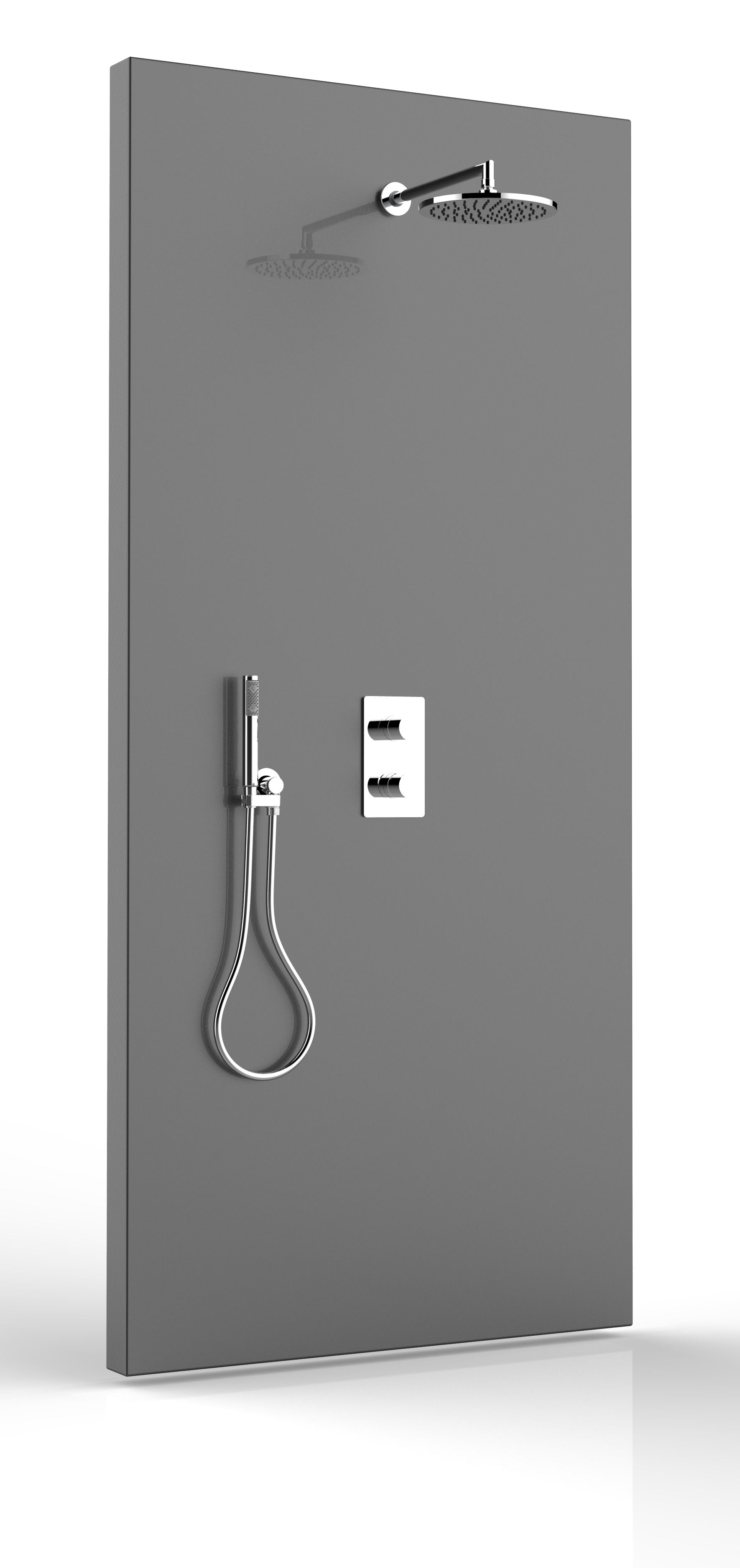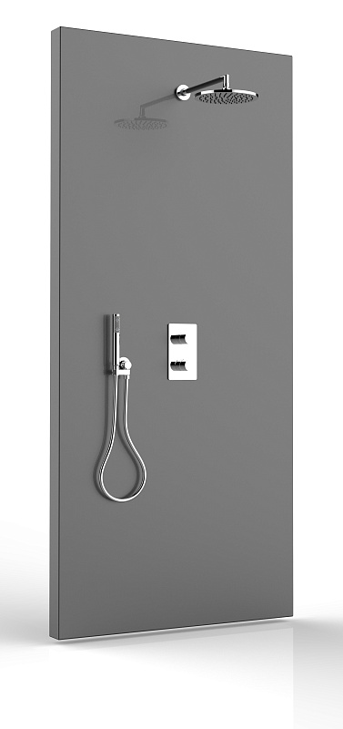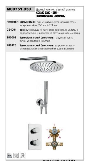 —Душевой комплект Bossini COSMO: смеситель термостат на 2 выхода, верхний душ Ø 230 мм, ручной душ ZEN с водорозеткой, шланг 150 см, цвет хром (M00751.030)