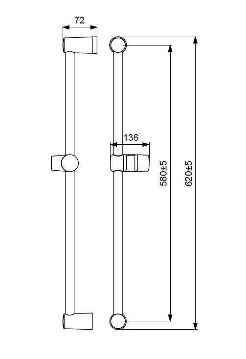VIDIMA FRESH S Штанга для душа 600 мм (+/-5 мм), Ø 18 мм, пластиковый держатель лейки, регулировка наклона лейки