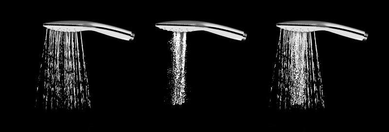 - лейка ручного душа: диаметр 120 мм, ABS пластик белый, 3 режима - "Jet", "Rain", "Jet + Rain"