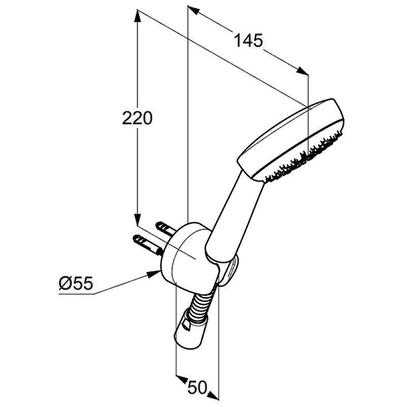В комплекте поставки: ручная душевая лейка, шланг, настенный держатель для душа, комплект креплений.