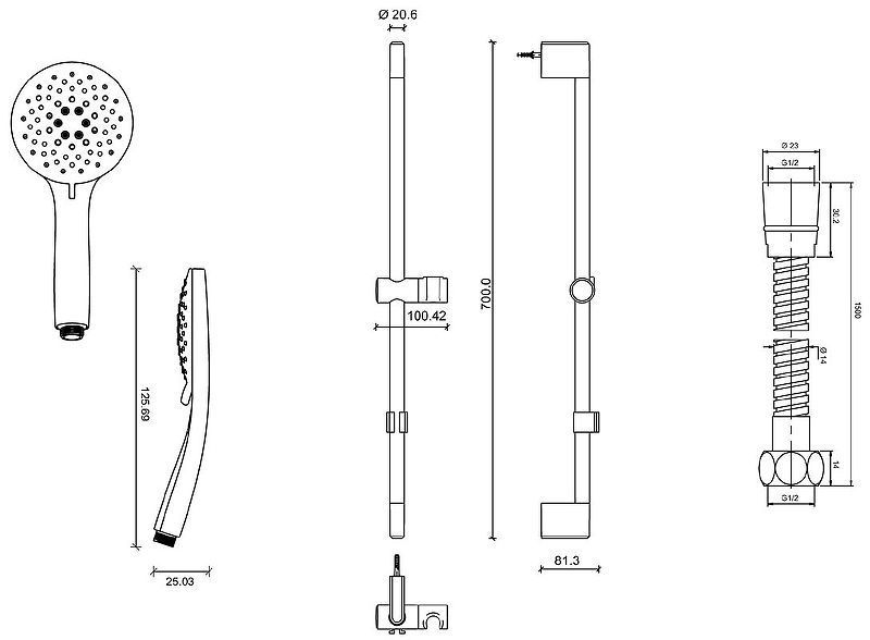 Оснащение: регулируемый держатель душевой лейки.