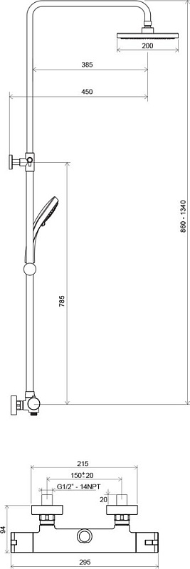 —Душевая система Ravak Termo 100 TE 091.00/150, с термостатом, хром (X070058)