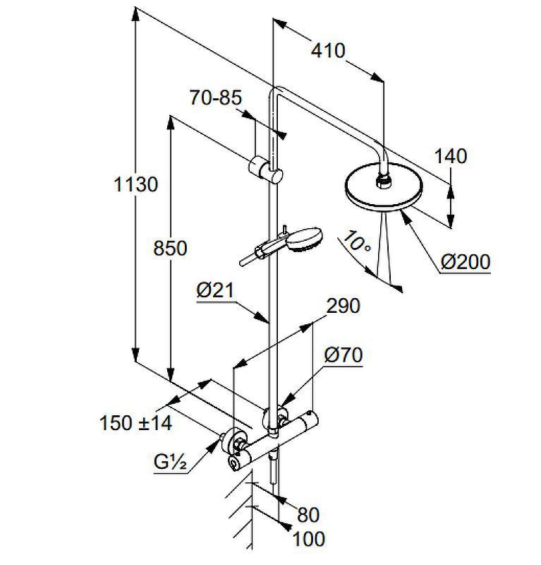 Диаметр верхний душ диаметр: 20 см.