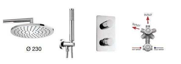 —Душевой комплект Bossini COSMO: смеситель на 2 выхода, верхний душ Ø 230 мм, ручной душ ZEN с водорозеткой, шланг 150 см, цвет хром (M00753.030)