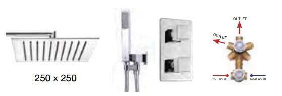 —Душевой комплект Bossini COTETIS: смеситель на 2 выхода, верхний душ 250x250 мм, ручной душ CUBE с водорозеткой, шланг 150 см, цвет хром (M00764.030)
