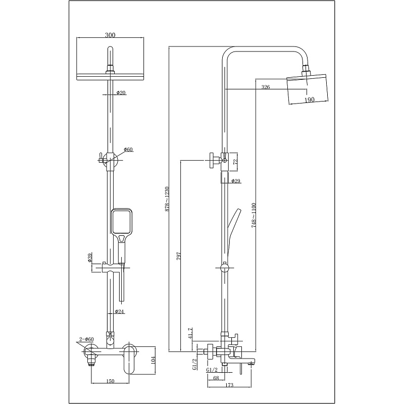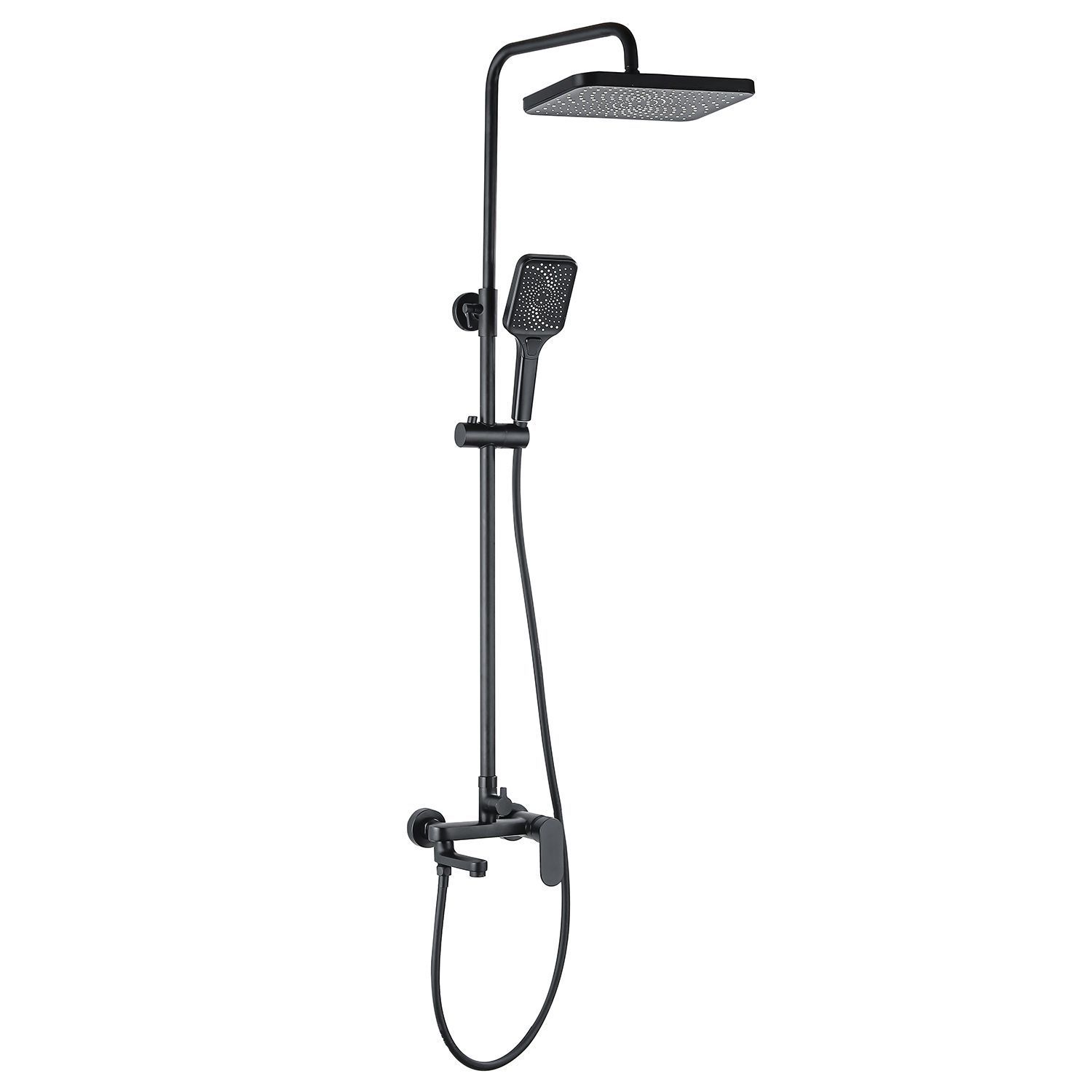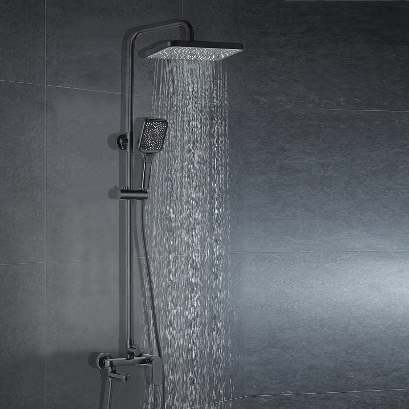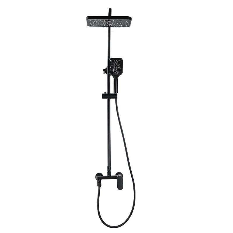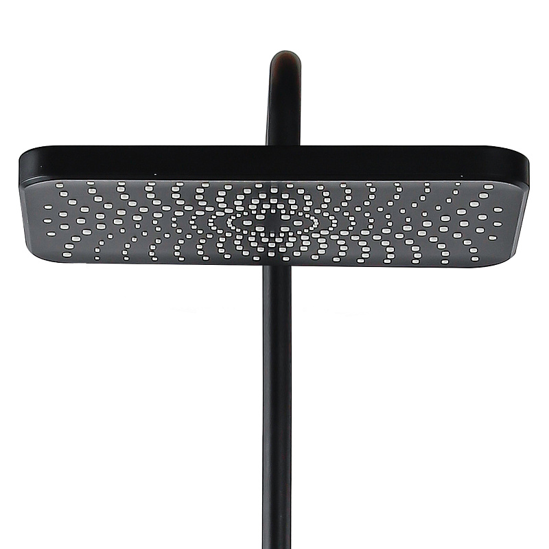 2) Верхний душ  прямоугольный 19*30 см., материал ABS -пластик.                           3) Прямоугольная лейка 3 режима, материал ABS -пластик.                                      4) Латунный смеситель.