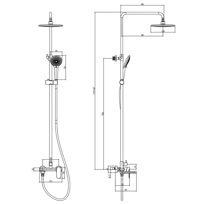Душевая система Florida Round с круглым тропическим душем и круглой лейкой. Поворотный излив