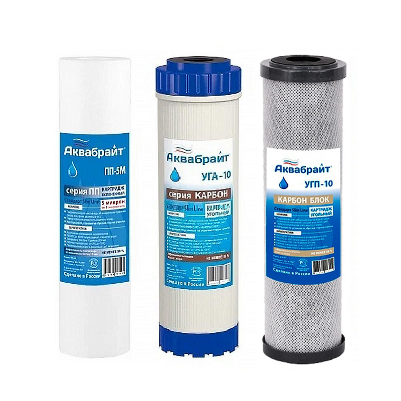 Комплекты картриджей Аквабрайт К-1 предназначен для установки в трёхступенчатые системы предварительной очистки холодной воды Аквабрайт и др.