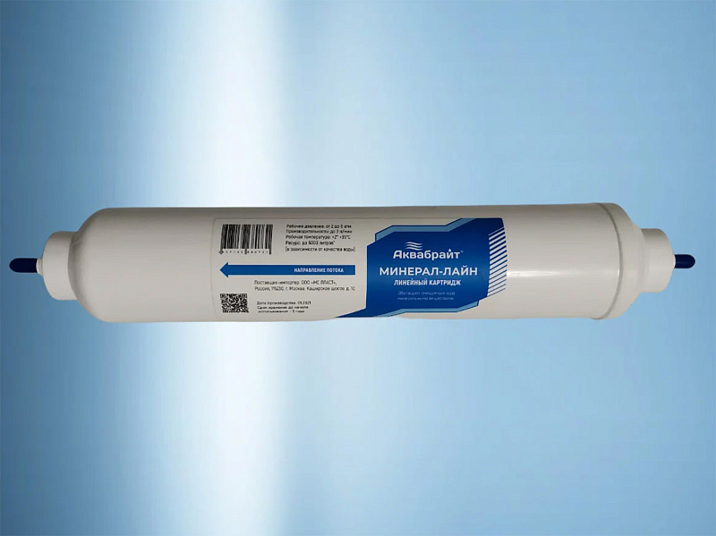 Линейный картридж МИНЕРАЛ-ЛАЙН Аквабрайт используется в системах обратного осмоса, в качестве последней ступени. Обогащает воду солями и минералами необходимыми для организма. Минерализующий картридж минерал-лайн полностью повторяет процесс минерализации воды. Его задачей является обогащение воды минеральными соединениями, необходимыми человеческому организму. Употребление одного литра такой минерализованной воды, обеспечивает потребность организма в микроэлементах, содержащихся в жидкостях, и является отличным дополнением к ежедневной диете. Применяется в системах АБФ-ОСМО-6