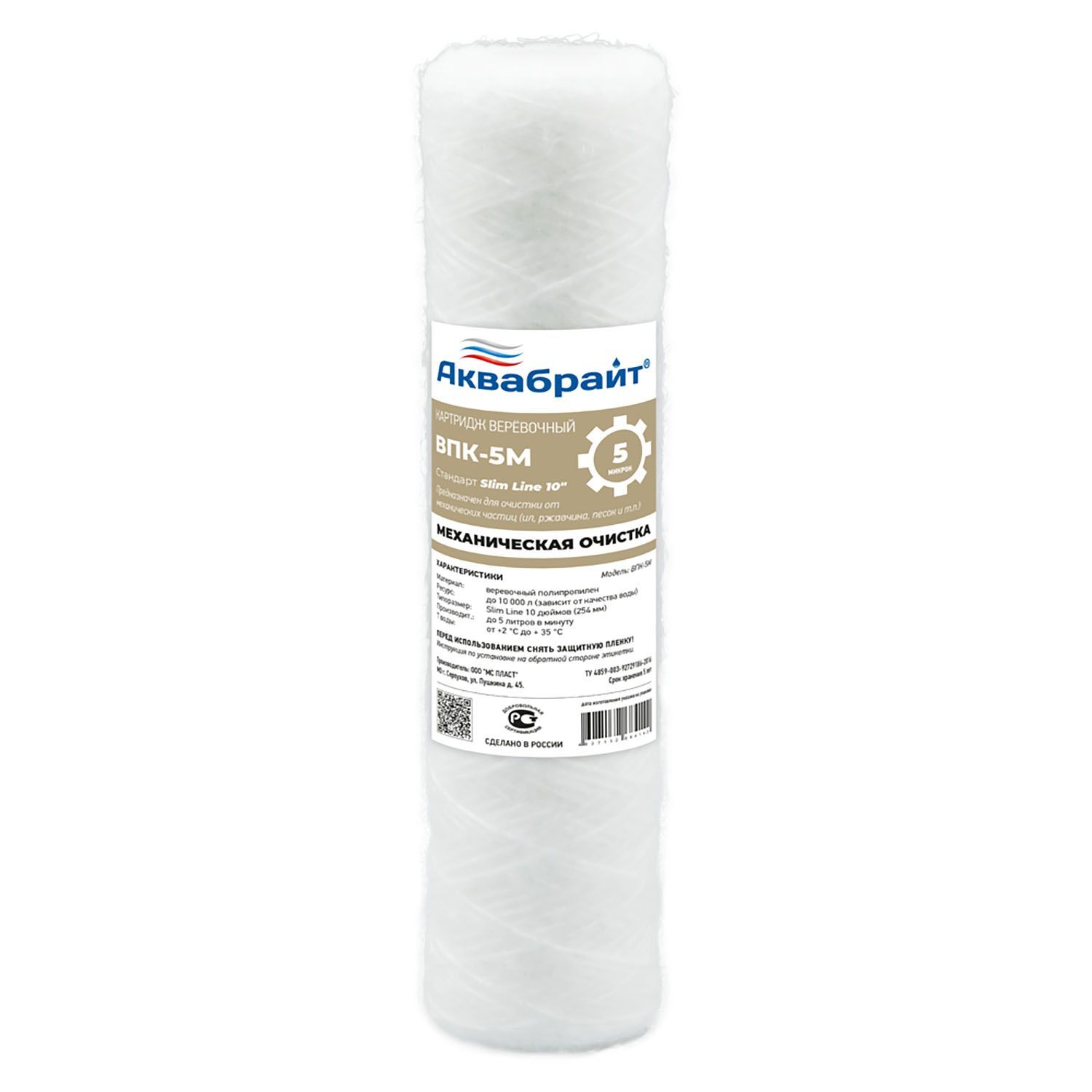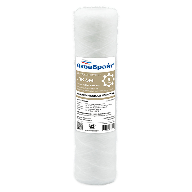 —Картридж для очистки воды АКВАБРАЙТ верёвочный, Slim Line 10", 5 мкр (ВПК- 5М)
