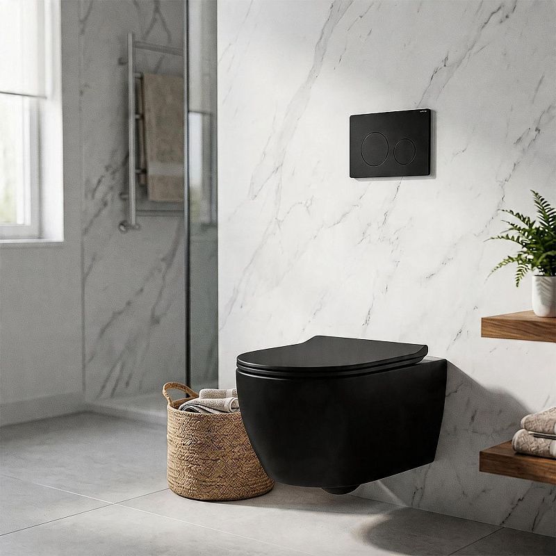 Компактная панель управления сливом (размеры: 24х16 см, глубина 1 см) идеально дополнит инсталляцию Azario. Модель выполнена в классическом сочетании: прочная рамка из ударопрочного пластика и кнопки из нержавеющей стали. Такое решение обеспечивает долговечность, устойчивость к коррозии и современный «металлический» акцент в ванной.