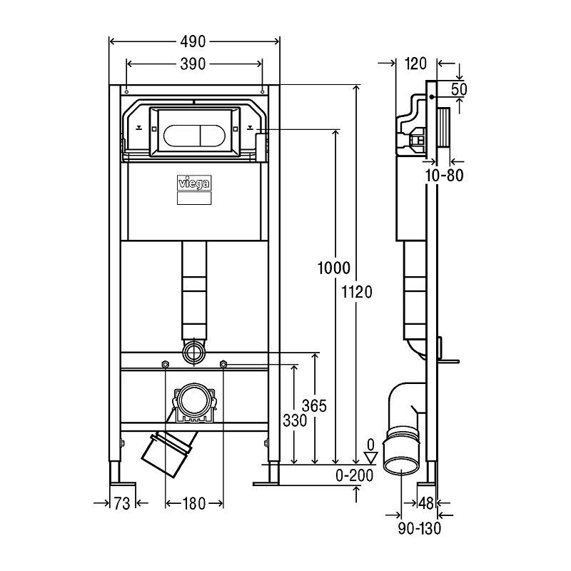 Рама (30х30) с порошковым напылением, бачок скрытого монтажа 3H, присоединительный комплект для унитаза, крепеж, подключение воды R½ с задней стороны, регулируемое по глубине соединительное колено для унитаза DN90 из полипропилена (PP), эксцентриковый переходник DN90/100 из РР.